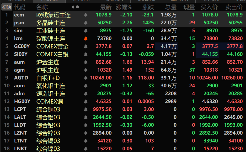 金属普跌多晶硅、双焦、工业硅跌幅居前纽金一度逼近3800美元【SMM午评】