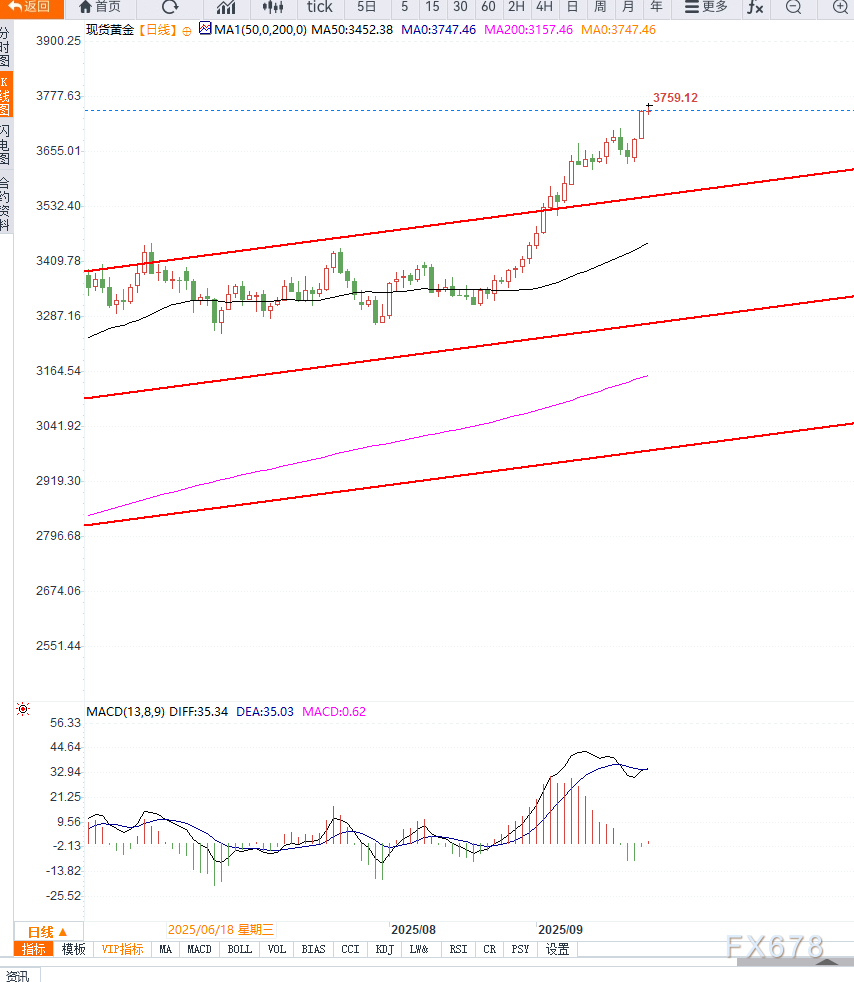若跌破,可能引发回调至3,685美元一带;上行方面,3,759美元的高点为短期阻力,若突破将打开新的历史空间。尽管RSI指标显示超买,但市场倾向将回调视为买入机会。