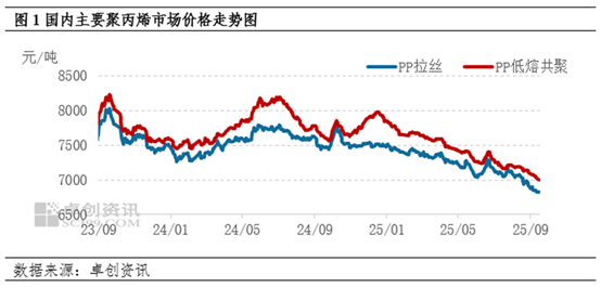 9月上半月来看,PP市场价格重心环比仍下跌。以华东市场为例,截至9月16日,拉丝均价收在6852.08元/吨,较8月下跌164.11元/吨,跌幅2.34%;低熔共聚均价收在7047.92元/吨,较8月下跌113.75元/吨,跌幅1.59%。导致这一走势的主要原因是基本面尚未有明显好转,尤其旺季需求表现并不旺盛也压制了市场整体交投氛围。