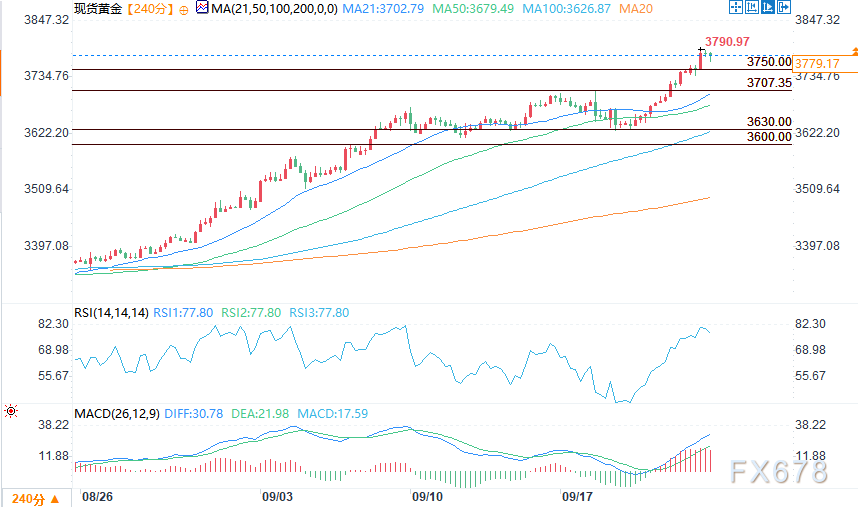 汇通财经APP讯——周二(9月23日),黄金延续创纪录走势,触及3791美元的全新历史高点。