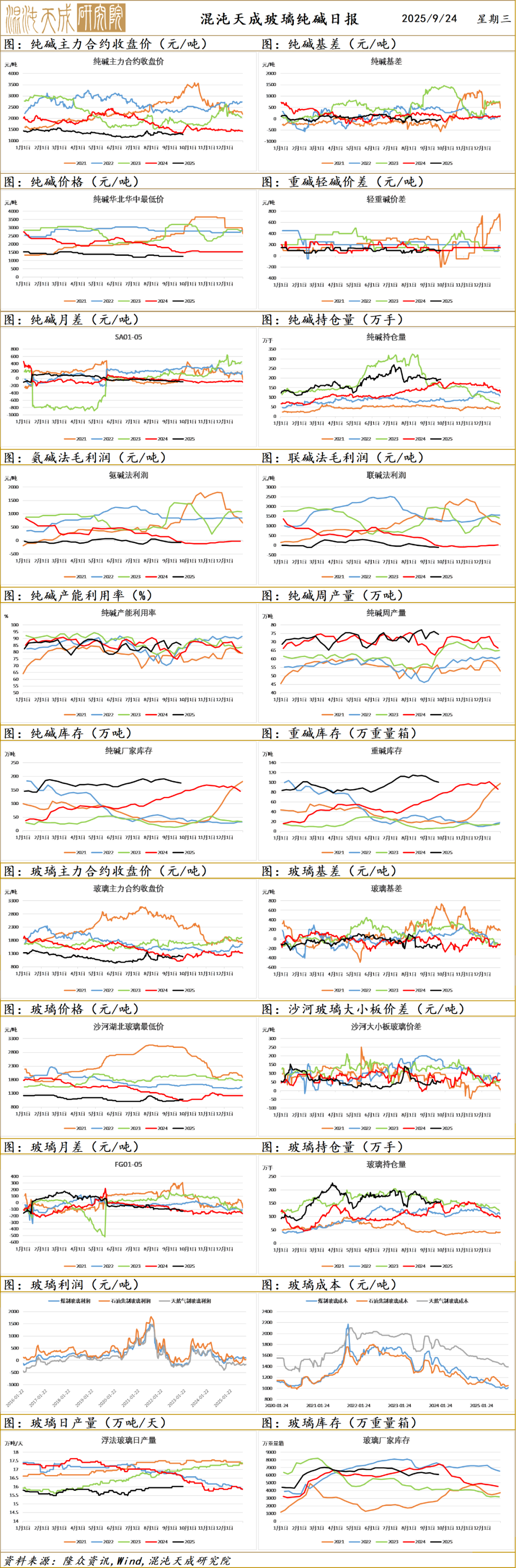 玻璃:今日浮法玻璃现货价格1170元/吨,环比上一交易日持平。华北市场整体表现一般,市场情绪减弱叠加降雨影响,业者采购积极性一般,价格稳中偏弱运行,成交灵活。华东市场操作气氛一般,企业稳价出货为主,山东部分企业受降雨影响企业出货受限,下游操作多维持刚需,虽然假期临近,多数基本暂无备货意愿。华中市场变化不大,多数中下游按需采购,原片企业价格稳定。西南区域浮法玻璃价格暂稳运行,成都区域地销价格1160-1180元/吨不等,略低1140元/吨,当前下游客户维持刚需采购,国庆节前预估价格波动有限。今日广东区域浮法玻璃主流售价保持平稳,今日台风登陆,预估多地出货受阻,叠加节日将至,市场价格或维持平稳。东北市场平稳运行,工厂出货一般,下游仍刚需采购。今日西北区域浮法玻璃部分品牌价格上移,送到西安区域价格涨至1280元/吨左右,其它仍旧观望为主。