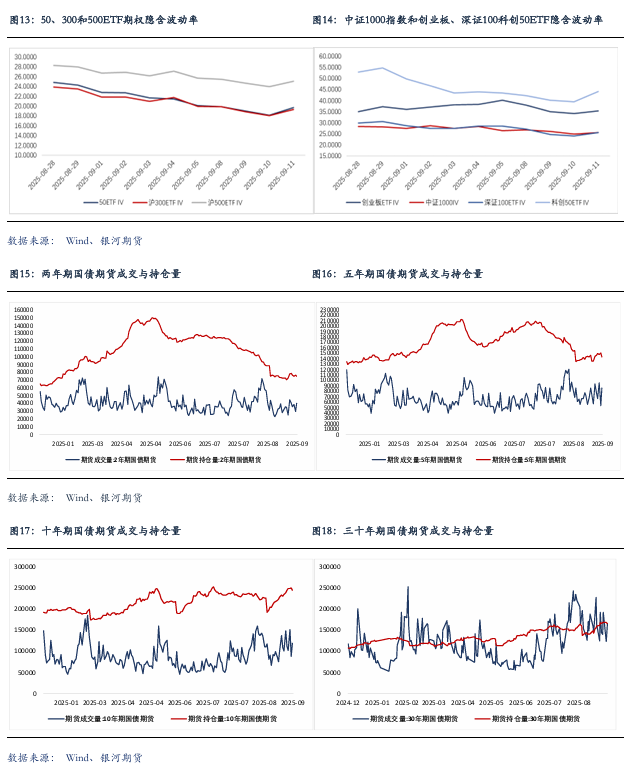 期权方面,标的日内振幅不小叠加ETF期权9月合约临近到期。多数期权品种成交量维持相对高位。品种上看,创业板ETF期权成交相对活跃。波动率方面,多数期权品种隐波尾盘回落。另外近期市场情绪切换频繁,隐波与标的相关性不稳定,且隐波弹性较高。