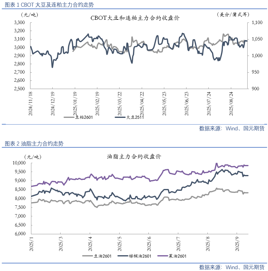 核心观点:中美双方再度就关税等问题讨论,叠加USDA9月报告利多有限,市场交易重点仍在于中国四季度进口大豆采购预期,若关税问题有乐观进展,则两粕存在进一步回落空间。