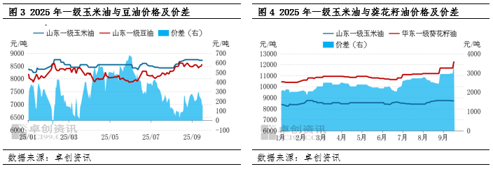 玉米油与豆油价差较小、与葵花籽油价差较大利于支撑现货价格