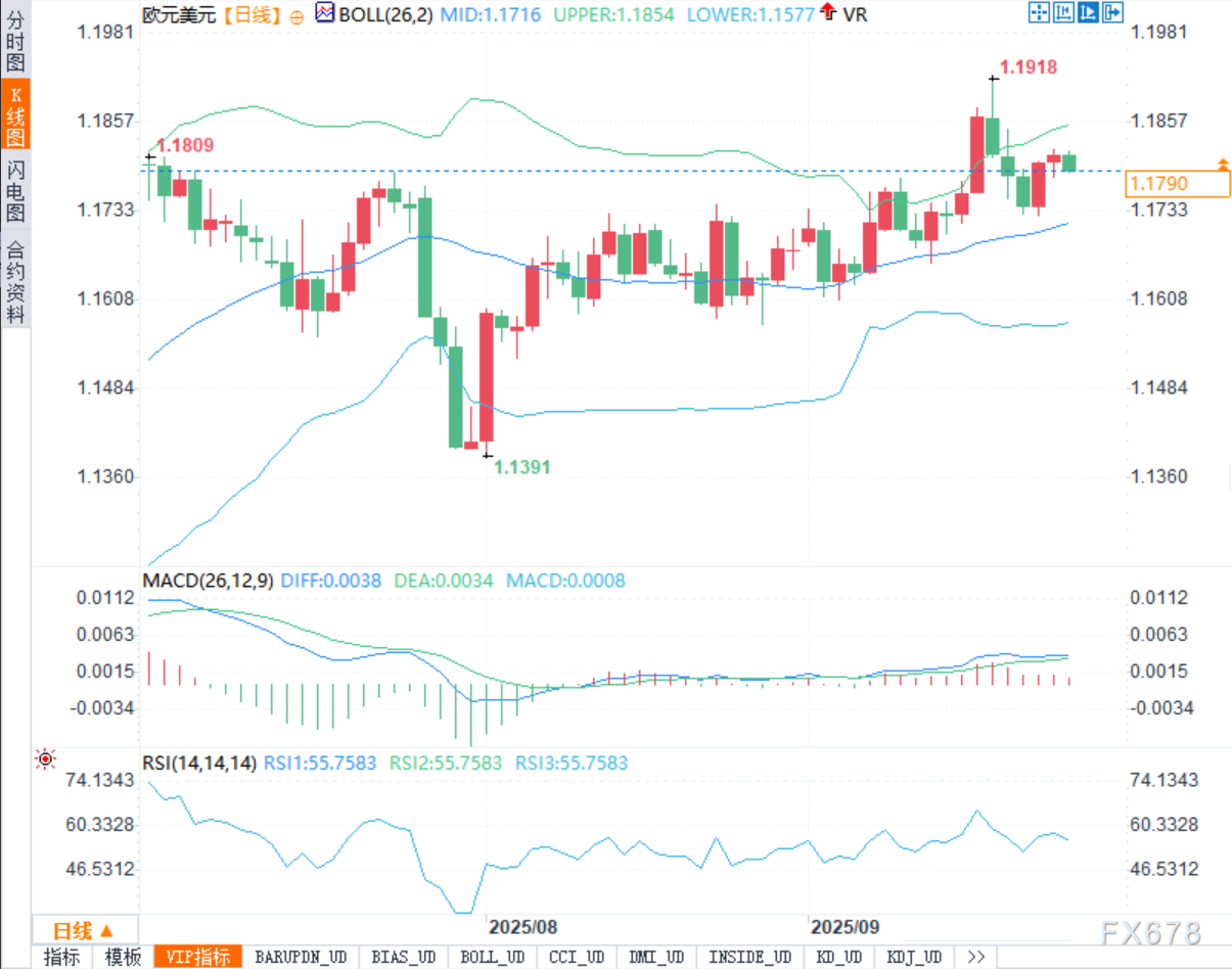 若美国数据意外走强或通胀再现黏性,联储口径偏鹰推升实际利差,则1.1790—1.1750区间将被重新检验,中轨1.1716是强弱分水岭;一旦有效跌破,调整目标或指向1.1577,届时需观察下轨是否形成“止跌企稳—反抽回测”的箱体节奏。