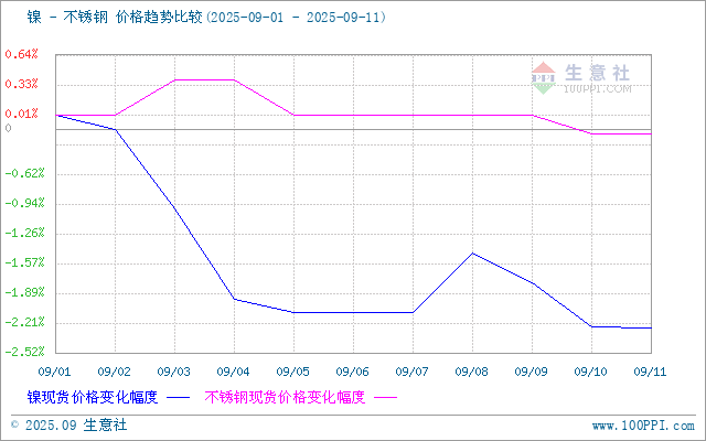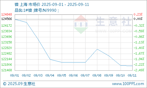 据生意社商品行情分析系统,截止9月11日,现货电解镍报121750元/吨,较月初下跌2.26%。9月初以来,镍价呈现重心下移趋势,主要受全球显性库存持续攀升、不锈钢需求恢复缓慢等因素压制,市场维持震荡偏弱格局。