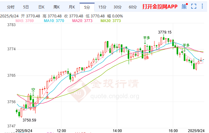 本周三(9月24日)现货黄金走势跌宕起伏,先抑后扬,成功收复亚市时段跌至3750美元/盎司左右的温和跌幅。当下于3770美元关口上方蓄势震荡,似已企稳。美联储降息预期、俄乌及中东冲突带来的地缘风险,加之全球风险情绪转差,多方因素共同托举贵金属价格上行。