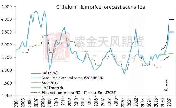 中国产能见顶后,市场开始关注印尼。根据现投产计划,预计到2029年印尼原铝产能将达230万吨——但这严重依赖其配套的自备燃煤电厂,且此类一体化项目的投资回收期长达8-11年。根据花旗测算,铝价需要持续稳定在3000美元/吨以上,才能为印尼等新兴地区的项目提供足够的投资回报,以启动新的产能建设。另一方面,废铝回收的实际产出较大概率低于市场预期(废铝章节将详细解读),难以弥补原铝可能的缺口。