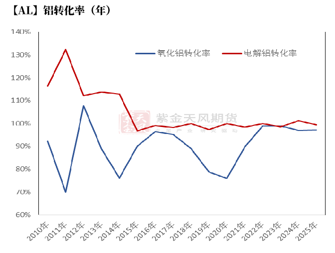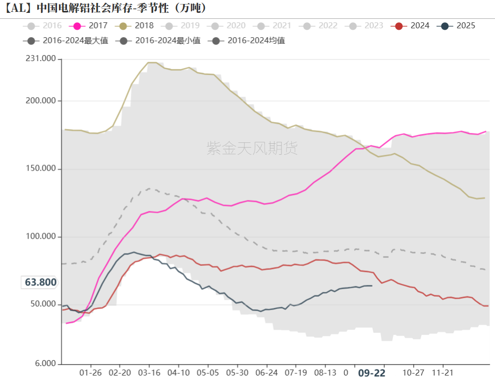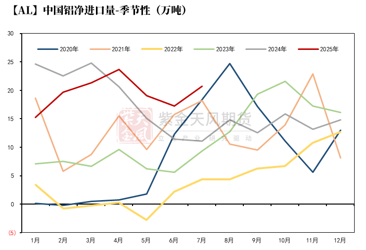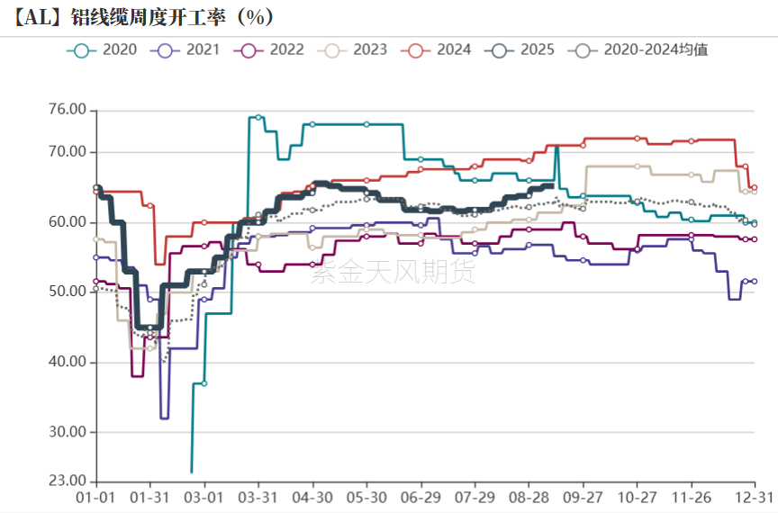 从历史来看,铝水比例在近三年内逐步走高,预计2025年铝水比例高达72.59%,接近17-18年占比水平。由于铝水基本全部进入下游加工企业,这也变相导致了铝锭库存的可参照性下降。今年铝锭去库不畅的主要原因也是铝水阶段性下行导致的。