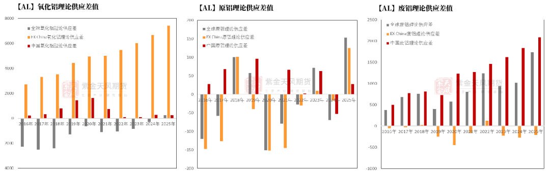 我们对氧化铝、原铝以及废铝三个品种分别构建了理论供应模型。其中,氧化铝与原铝的理论供应量分别根据铝土矿及氧化铝的实际产量计算得出,废铝则基于8-10年回收周期假设推算出的理论供应值。
