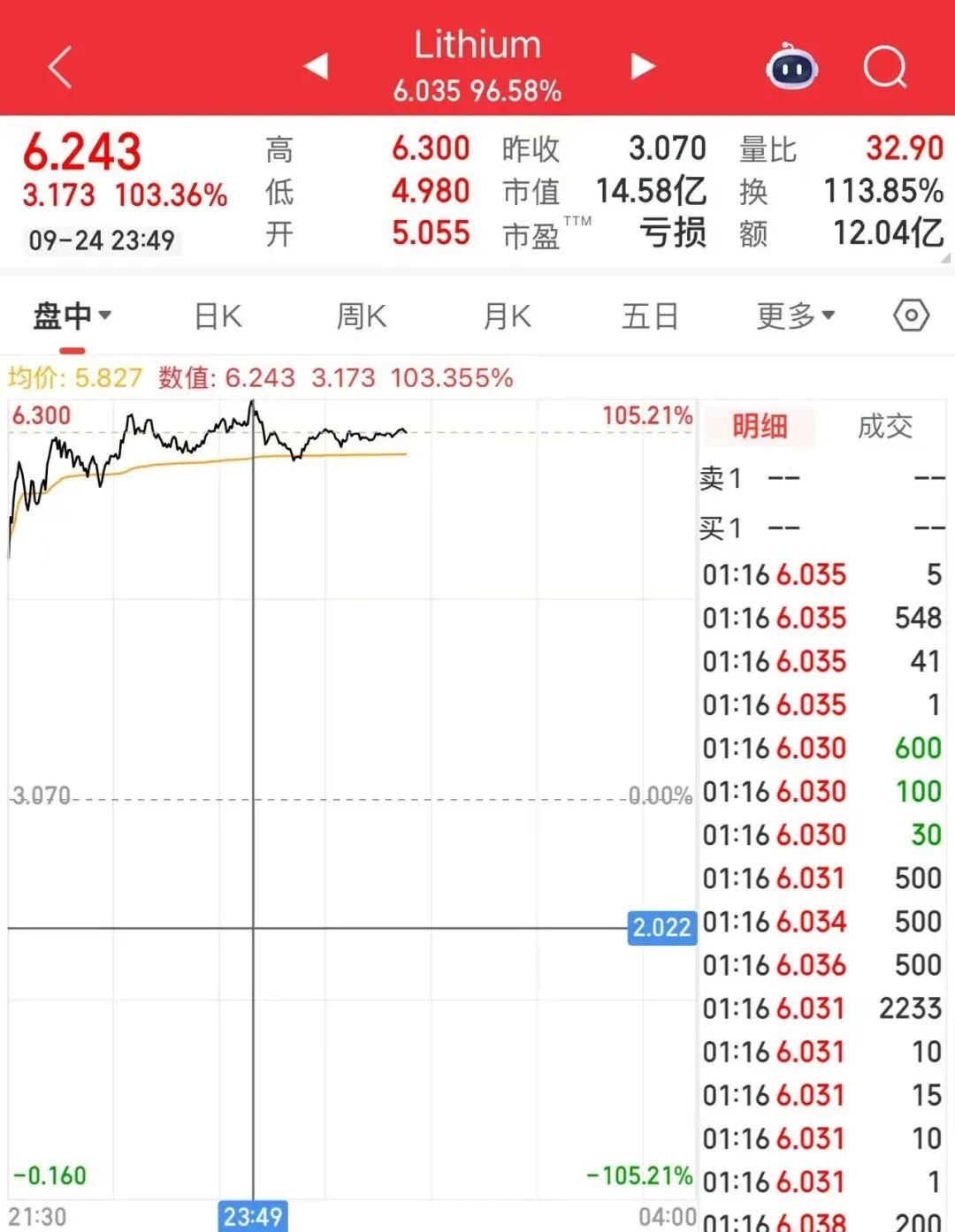 截至今晨收盘,美洲锂业股价上涨95.6%。