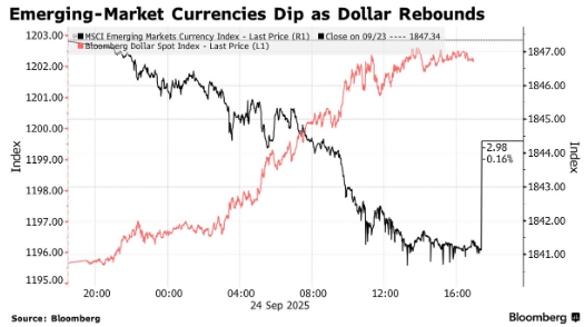 周三,由于美联储官员释放出的降息信号存在不确定性,美元走强,新兴市场货币纷纷下跌。。追踪新兴市场货币的MSCI国际指数下跌了0.2%,其中匈牙利福林、捷克克朗、巴西雷亚尔和波兰兹罗提的跌幅均达到了至少0.8%。彭博美元指数上涨了0.6%,而美国国债收益率则有所上升,因为旧金山联储主席戴利周三表示,可能还需要进一步降息,但美联储在采取此类措施时应谨慎行事。