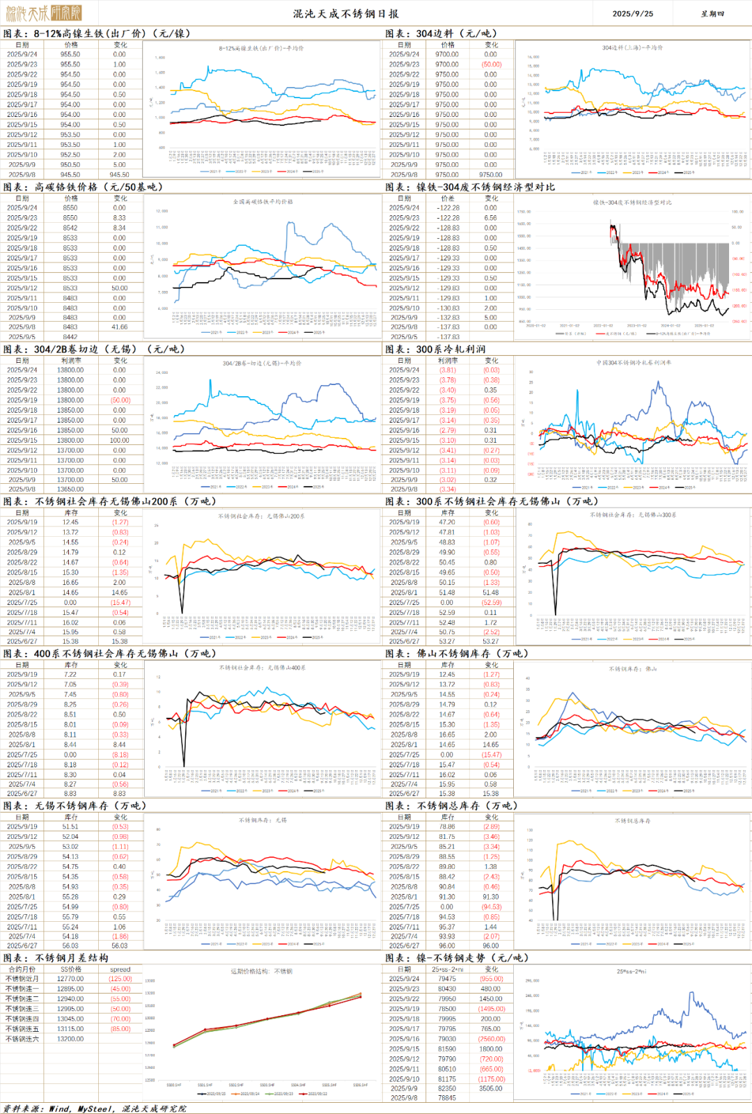 昨日不锈钢主力合约收盘价12935元/吨,涨跌幅0.24%。无锡现货基差升水维持600元/吨;主力合约持仓-7187至116304手;仓单-775至88233吨。