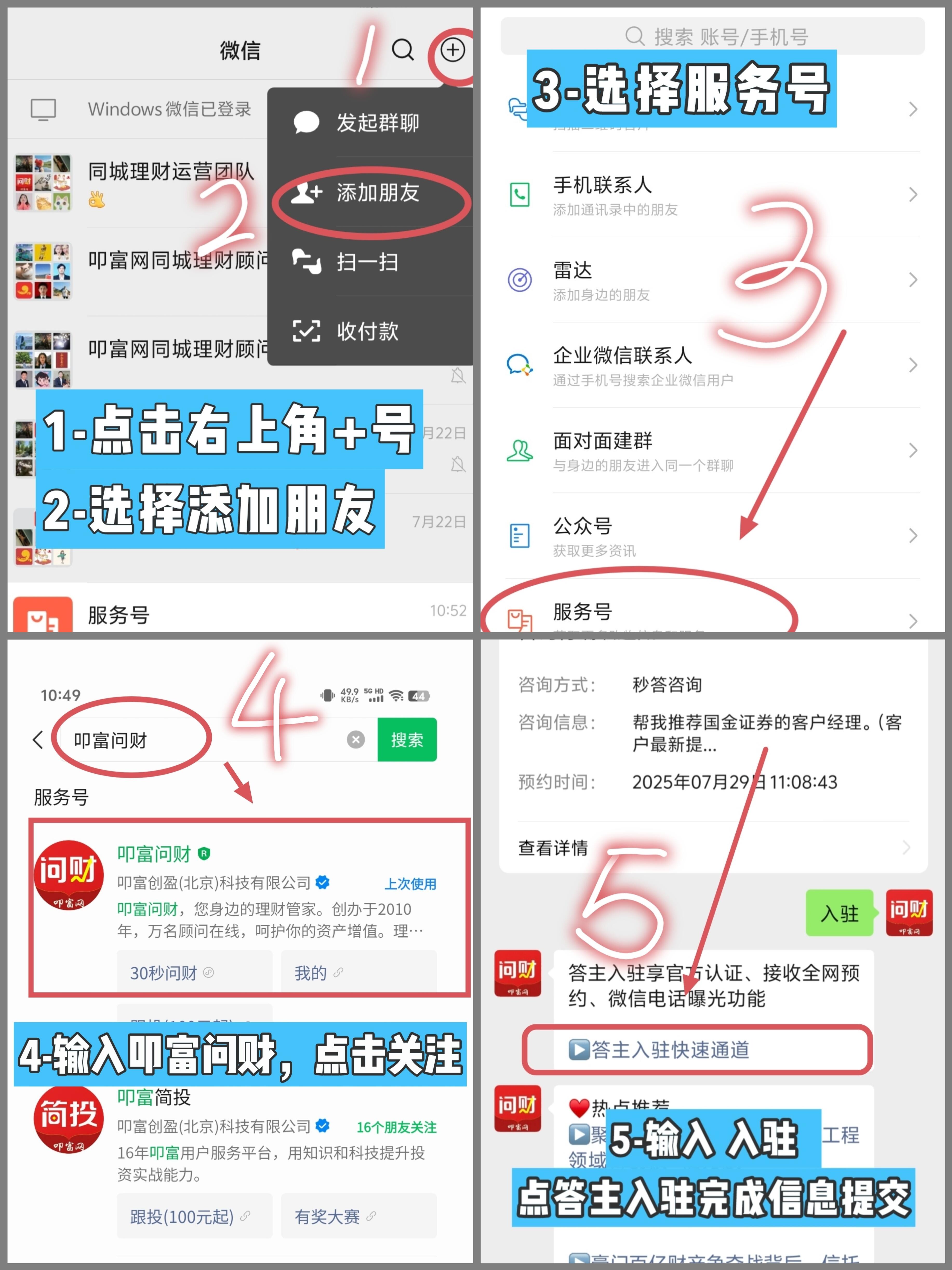 只需关注【叩富问财】服务号,在关注之后于对话框回复 #入驻 #,就能瞬间开启线上精准获客通道哦!