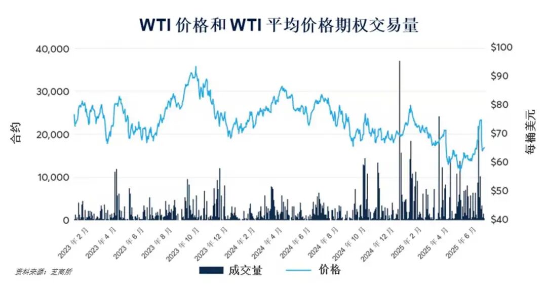 2025年上半年,WTI期权交易量同比增长40%,以生产者为导向的平均价格期权交易量在价格上涨和接近低点时均反映出显著活跃度。WTI CMA期货和平均价格WTI期权未平仓合约的显著增加,直接反映了这种更新且有目的的对冲活动。