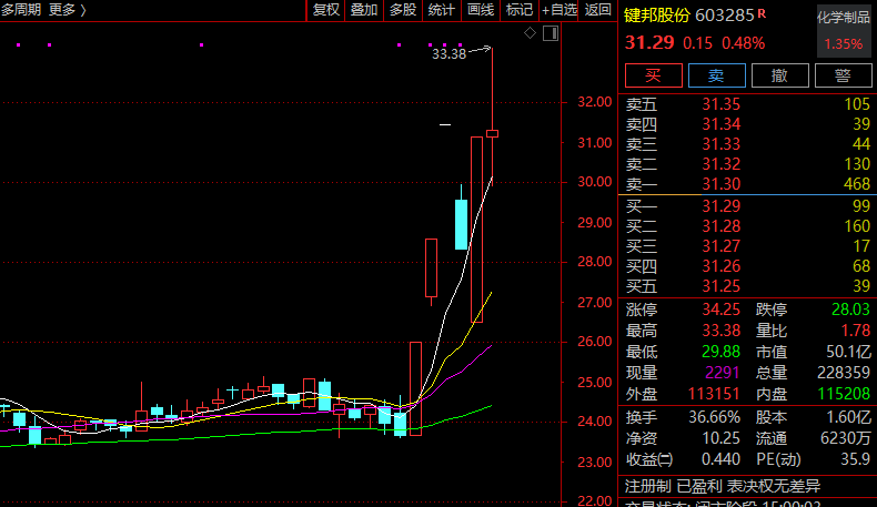 近日,键邦股份股价收获“6天4板”,该公司在接受投资者调研时表示,公司环保助剂新材料生产基地建设项目,募集资金将优先投资于“年产5000吨钛酸正丁酯、25000吨钛酸酯偶联剂/有机钛系列产品、20000吨偏苯三酸酐(TMA)”项目,建成时间预计为2028年4月。公司已于2025年8月收到济宁市生态环境局下发的《济宁生态环境局关于山东键邦新材料股份有限公司环保助剂新材料生产基地建设项目(一期)环境影响报告书的批复》。公司将根据计划安排进行项目建设。