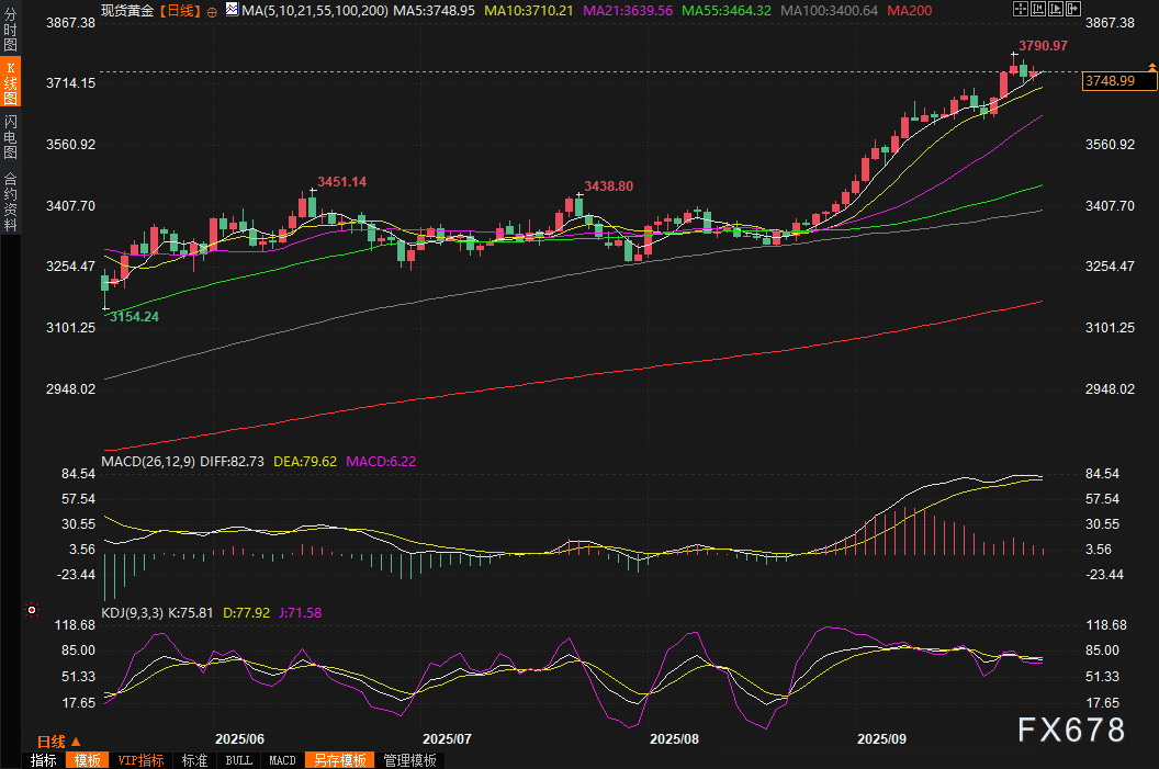 汇通财经APP讯——当市场的目光都聚焦于美联储的降息路径时,黄金正站在一个微妙的十字路口。一边是强劲的经济数据和再度抬头的美元,不断拷问着宽松政策的必要性;另一边则是烽烟四起的地缘政治和蠢蠢欲动的逢低买盘,为金价构筑了坚实的底部。一场由关键通胀报告主导的多空大战,一触即发。现货黄金周四最高触及3761.46美元/盎司,在初请失业金人数公布后一度跌至3722美元/盎司,但很快受到逢低买盘和避险买盘支撑,收报3749.18美元/盎司,涨幅约0.38%。周五(9月26日)亚市早盘,现货黄金窄幅震荡,目前交投于3748.13美元/盎司附近。