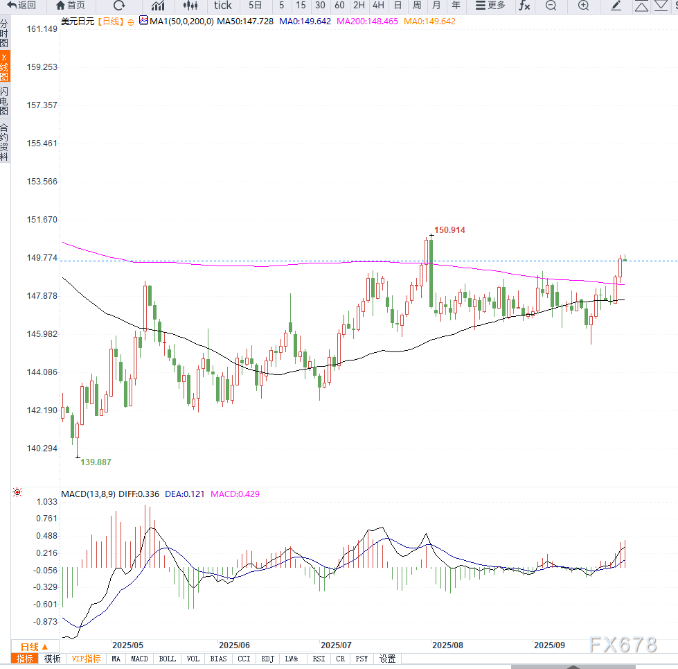 尽管如此,投资者仍预期美联储在10月和12月可能继续降息,这限制了美元的进一步走强,也使美元兑日元在150关口附近出现停滞。