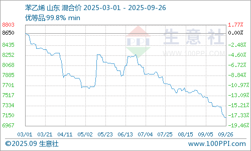 据生意社商品分析系统,本周苯乙烯市场小幅下跌,周初均价7184元/吨,周末均价7120元/吨,周内跌幅0.89%。