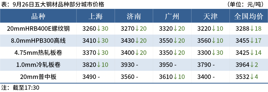 ◎9月26日,唐山迁安普方坯资源出厂含税下调40,报2990元/吨。