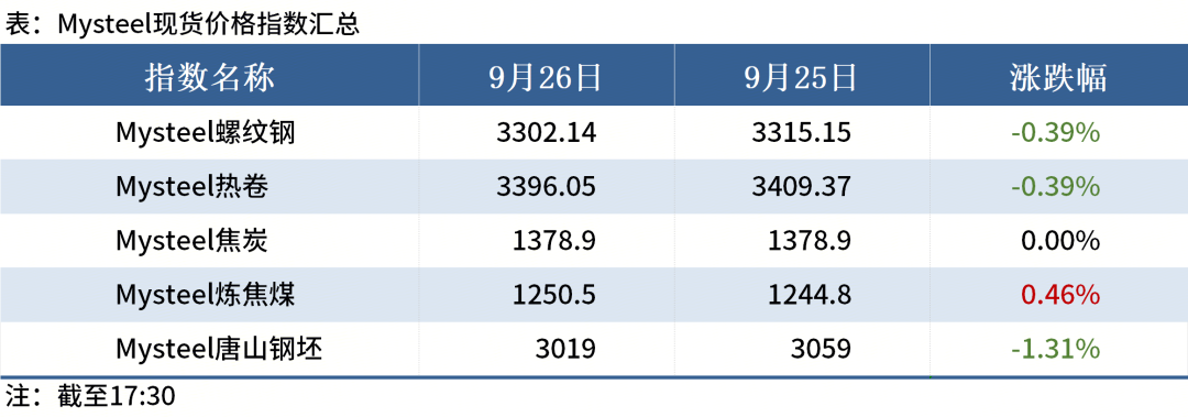 ◎9月26日,76家独立电弧炉建筑钢材钢厂平均成本为3332元/吨,日环比持平,平均利润为-128元/吨,谷电利润为-31元/吨,日环比持平。