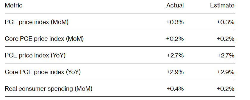 根据周五发布的美国经济分析局(BEA)数据,按通胀价格变动调整后的消费者支出上月增长0.4%,优于经济学家们普遍预期的0.2%增幅,与经过上调之后的前值一致。美联储官员们长期以来最青睐的通胀指标——即所谓的核心个人消费支出(即核心PCE)物价指数(剔除食品和能源,且为美联储偏好的通胀指标)较7月环比上涨0.2%,与经济学家预期以及经过下修的前值一致。与上年同期相比,该核心通胀指标则顽固地维持在2.9%,同样与预期与前值一致。