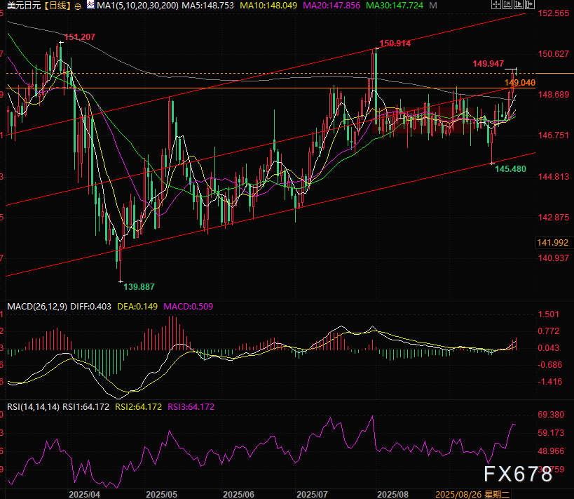 汇通财经APP讯——周五(9月26日)纽约时段,美元兑日元下跌0.13%,受美国PCE数据超预期反而压制美元走势,目前交投于149.46附近,我们通过下文找寻线索。回顾今天的走势,亚市早盘的盘中,受不及预期的日本东京CPI发布,汇价一度由149.93跌至149.65跌了近30个点。