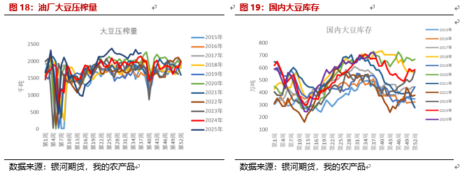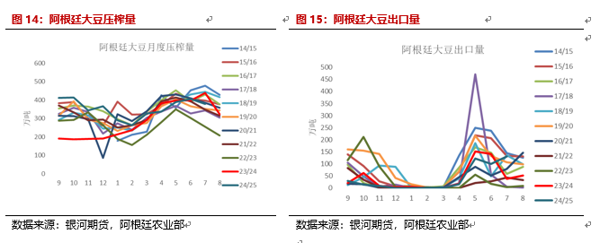 阿根廷大豆产量较上年度整体有所增加,市场预估在4900-5000万吨左右。阿根廷大豆压榨继续维持较高水平,截止当前,预计阿根廷整体压榨量同比持平。出口方面来看,近期阿根廷出口整体有所加快,截止当前,阿根廷大豆出口量同比增加。由于近期阿根廷增加卖货数量,预计后续出口量将呈现明显增加,这可能对后续压榨产生一定影响,不过在今年阿根廷大豆产量维持高位的情况下,预计总体供应仍然比较充足。