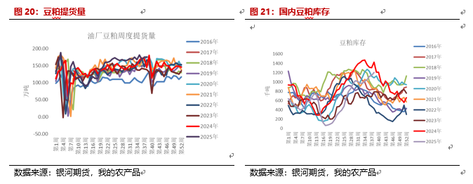 前期市场关注重点主要在于供应端的不确定性,虽然大豆到港量的持续增加使得国内库存压力体现明显,但后续持续买船较少使得远期大豆到港量仍然存在较大变数。不过,从近期巴西国内卖货情况来看,后续供应不确定情况已经明显好转,大豆到港量可能维持相对较高水平,并且阿根廷近期卖货增加也较大程度补充了国内大豆的供应,因此,后续供应不确定性已经明显好转,高库存下更多表现为豆粕的缓慢去库。受此影响,近期国内豆粕盘面呈现明显回落态势,大豆压榨利润也较此前有所回落,一定程度反应了后续国内供应基本充足的情况。不过,需要关注的是,在国内供应主要依靠巴西剩余大豆的情况下,压榨利润以及卖货节奏可能仍将对市场产生较多影响,在现货端对供应压力体现充分的背景下,预计深跌空间有限。总体来看,在远期供应不确定性好转的背景下,豆粕价格想象空间明显减少。