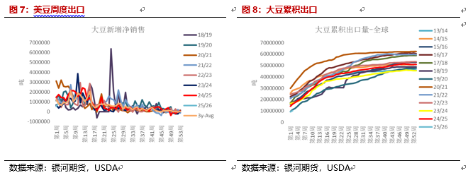 总体来看,当前美豆市场多空因素均存在,利多因素主要在于单产可能有进一步下调空间,同时美豆压榨表现良好,但出口方面缺乏提振的背景下,总体库存压力比较明显。当前美豆价位对于出口方面利空体现并不明显,如果宏观方面继续缺乏利多因素提振,预计美豆仍有较明显的下行压力。