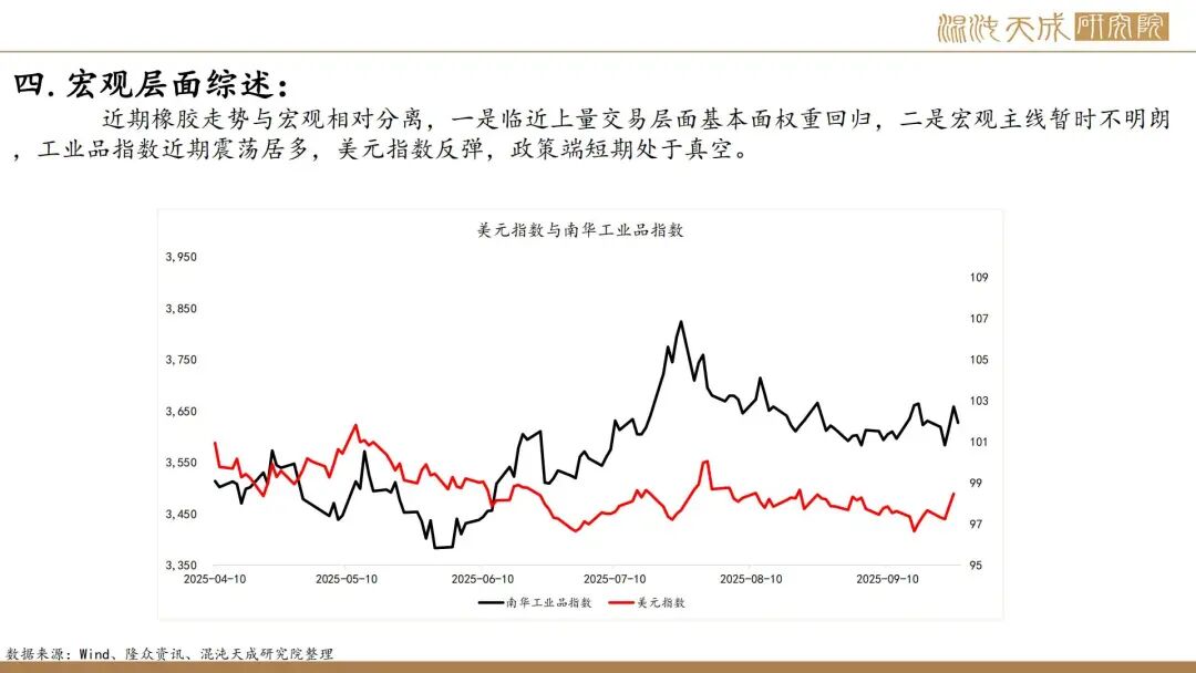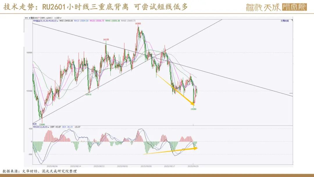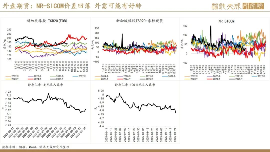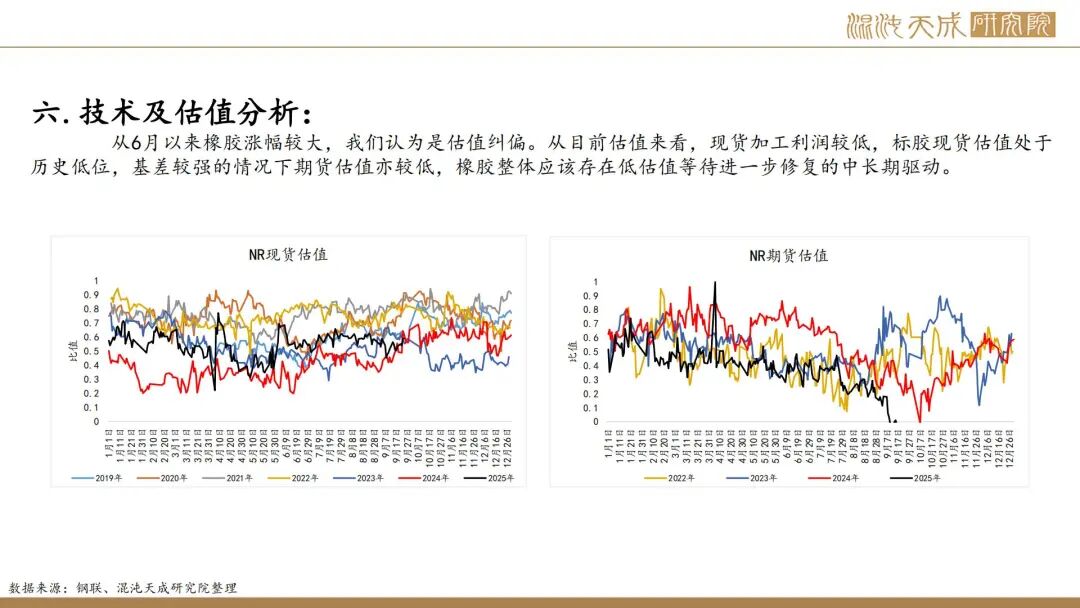 短期来看强现实明确,但弱预期在原料下跌趋势中逐步显化,RU估值相对中性。后续重点关注,新一轮台风路径,国储情况,节后胎企补库情况,以及10月份到港量能否体现深色增量。我们认为,四季度胶价大概率供需双增格局,在天气宏观配合下低多思路为主。