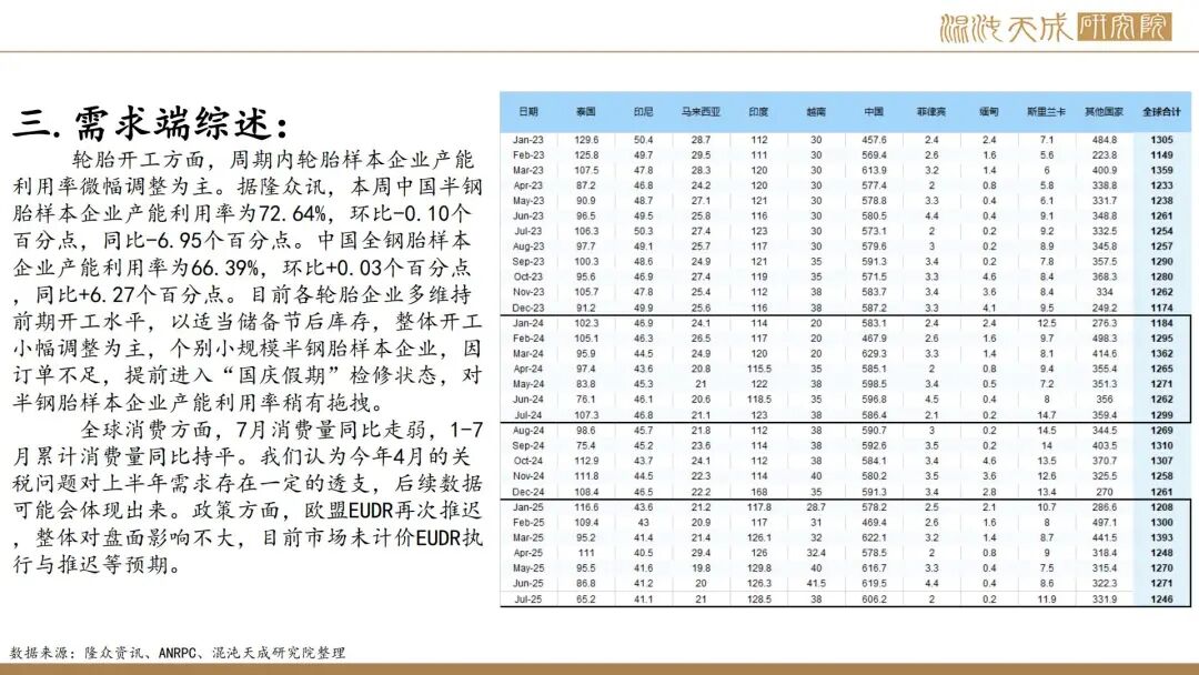 2.需求端(中性):胎企节前补库结束轮胎开工窄幅波动