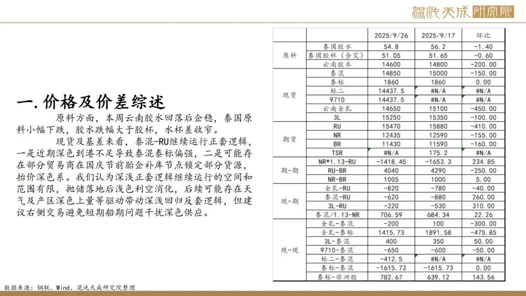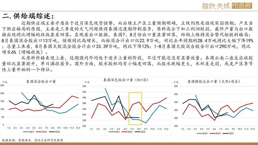 1.供应端(强现实弱预期):8月泰国出口继续走弱原料下跌或体现产区逐步上量