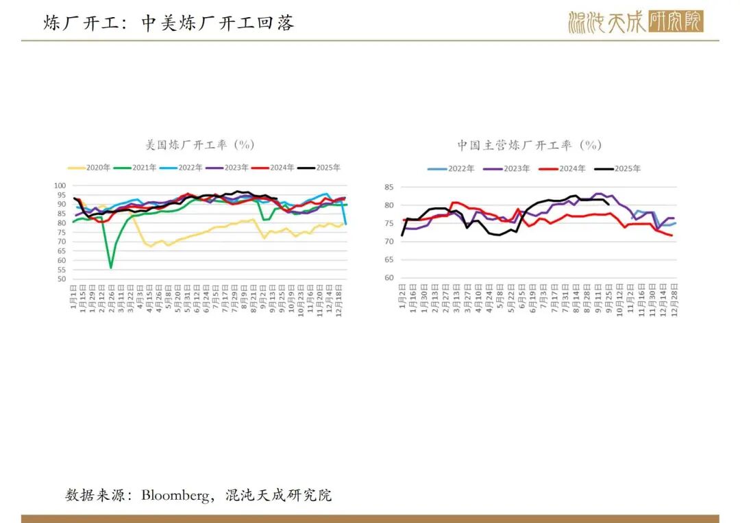 供应:OPEC+新一轮会议上推动了另外166万桶/日产能回归计划,将加剧过剩前景。但俄乌局势在当前形成了较强的供应干扰,乌克兰不断袭击俄罗斯石油设施,同时欧美对俄罗斯的制裁始终在酝酿中,形成较强不确定性。