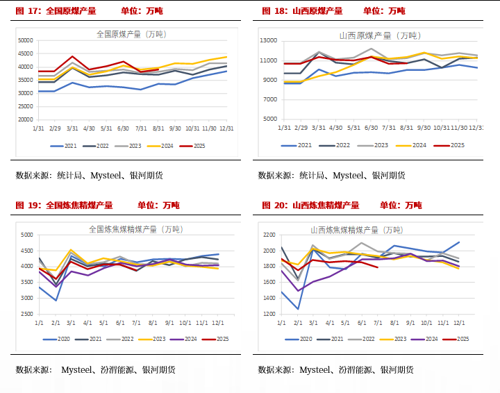 综合测算我们预计2025下半年焦煤产量环比上半年小幅下降,同比2024下半年下降1000万吨左右,2025全年产量与2024年基本持平。