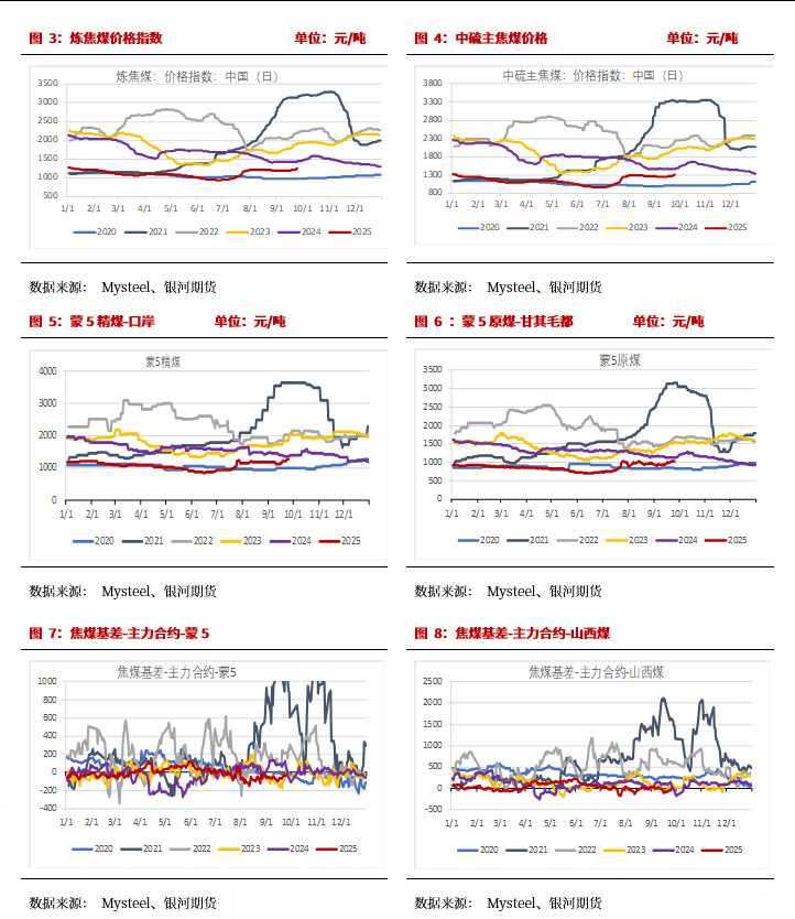 9月市场流传《内蒙古自治区能源局关于全区生产煤矿生产能力核查情况的通报》,通报指出了前一阶段核查存在的主要问题,并要求对2025年1- 6月单月原煤产量超过公告产能10%的煤矿,一律责令停产整改。虽然内蒙古不是焦煤主产区,但是市场担忧其他焦煤主产区也会对前期超产煤矿采取进一步的措施,这对于市场有托底的作用。