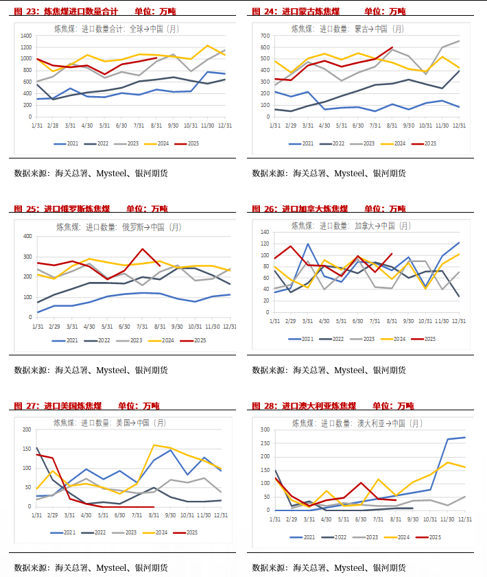 三、8月进口焦煤环比增加 预计四季度进口量处于高位