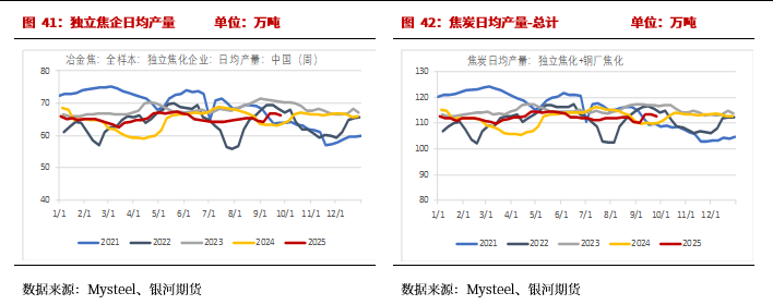 中期看,未来宏观经济防通缩依然是重点,也就意味着反内卷会时不时重提,具体到煤炭,未来煤矿查超产等还存在反复的情况,这对焦煤价格形成较大的支撑。国内焦煤产量在反内卷、查超产等影响下会受到压制,不确定在于对未来煤炭产量调控力度,预计焦煤产量难以回到上半年高点,也会低于去年同期水平,不过进口煤有一定补充,总体而言我们认为供给端是有政策托底的。对于上行高度,重点在于需求,目前看钢材需求有韧性,但看不到明显的亮点,钢材的需求及利润情况制约了原料的上涨空间。