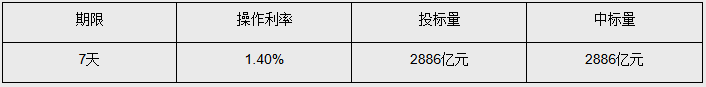 【大河财立方消息】9月29日,中国人民银行发布公告称,以固定利率、数量招标方式开展了2886亿元7天期逆回购操作,操作利率1.40%,与此前持平。今日2405亿元逆回购到期,据此计算,单日净投放481亿元。