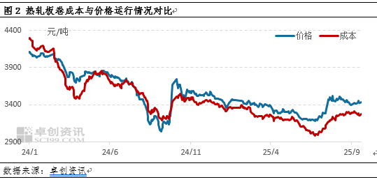 其次,供应方面,2025年钢厂盈利尚可,基本保持在100元/吨以上水平,下半年广东新增一条轧线,河南一条轧线即将投产,热轧板卷产能继续扩充,且企业多数保持高负荷生产,或带动市场供应保持高位水平。因此4季度供需矛盾或继续偏高。