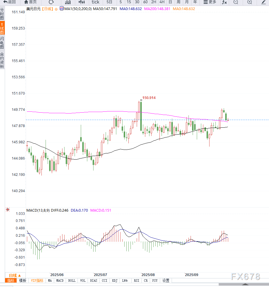 编辑观点:当前美元兑日元的走势受到双重力量博弈:一方面,日本经济数据走弱与日银分歧削弱了日元支撑;另一方面,美联储年底降息预期及美国政府潜在关门风险限制了美元涨幅。若日银在10月确实加息,将成为市场的关键转折点,否则美元兑日元仍可能维持偏多格局。
