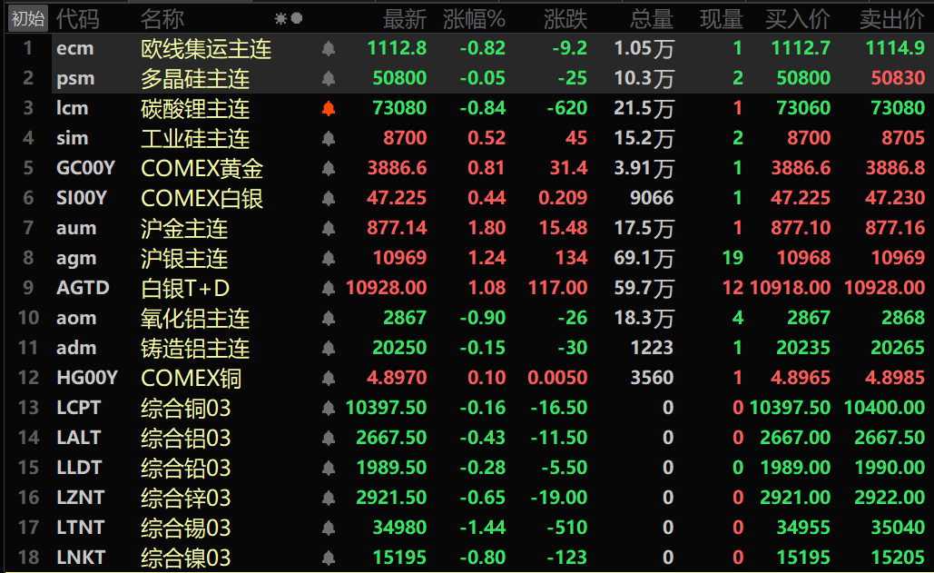 此外,铸造铝主连期货跌0.15%,氧化铝主连跌0.9%。碳酸锂主连跌0.84%,工业硅主连涨0.52%。多晶硅主连跌0.05%。
