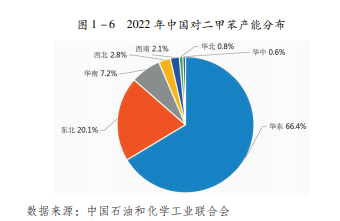 我国对二甲苯产能集中在华东、东北和华南地区。2022年,华东地区对二甲苯产能合计2358万吨,占全国总产能的66. 4%。东北地区产能合计714万吨,占全国总产能20. 1%。华南地区对二甲苯产能合计255万吨,占全国总产能7.2%。