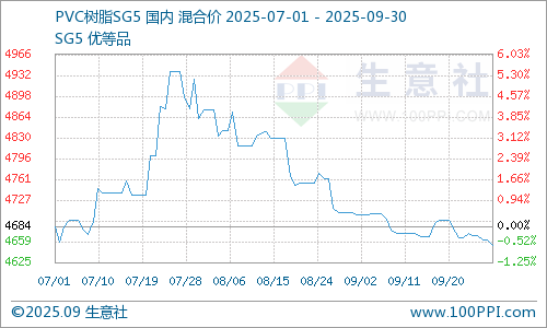生意社:9月PVC行情延续跌势后期或逐渐企稳