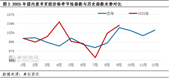 【导语】9月份国内废书页纸价格延续上涨格局,但涨幅放缓。随着白板纸中秋备货需求减弱,纸企开工负荷率下降,对废书页纸采购意向降低。10月份白板纸需求阶段性放缓,废书页纸或有恢复,或对10月份废书页纸价格形成一定下跌压力。
