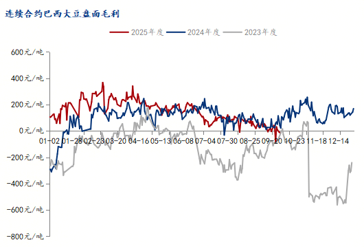 当前豆粕市场呈现出"高供应与稳需求"并存的格局。虽然压榨量环比下降,但大豆与豆粕库存双高,制约价格上行空间。区域间的供需分化加剧了市场结构性矛盾,华东成为价格洼地,而华南地区因需求相对稳定,价格表现较为坚挺。榨利持续恶化反映出基本面的疲弱,而"近强远弱"的成交格局则体现了市场的谨慎心态。
