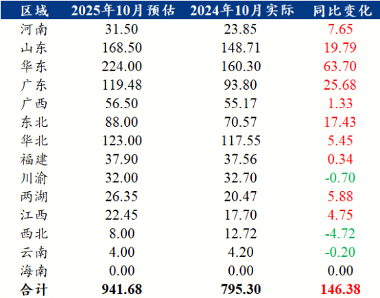 这一数据特征表明,虽然库存高企制约市场,但在豆粕性价比较高的背景下,下游需求表现相对稳定。从区域分布看,华东地区库存压力最为突出,部分油厂库存已接近物理极限;华南地区受台风影响出现大面积停机,库存压力相对缓解。10月份预计大豆到港量949万吨,虽较9月有所下降,但高结转库存意味着供应压力短期内仍将延续。
