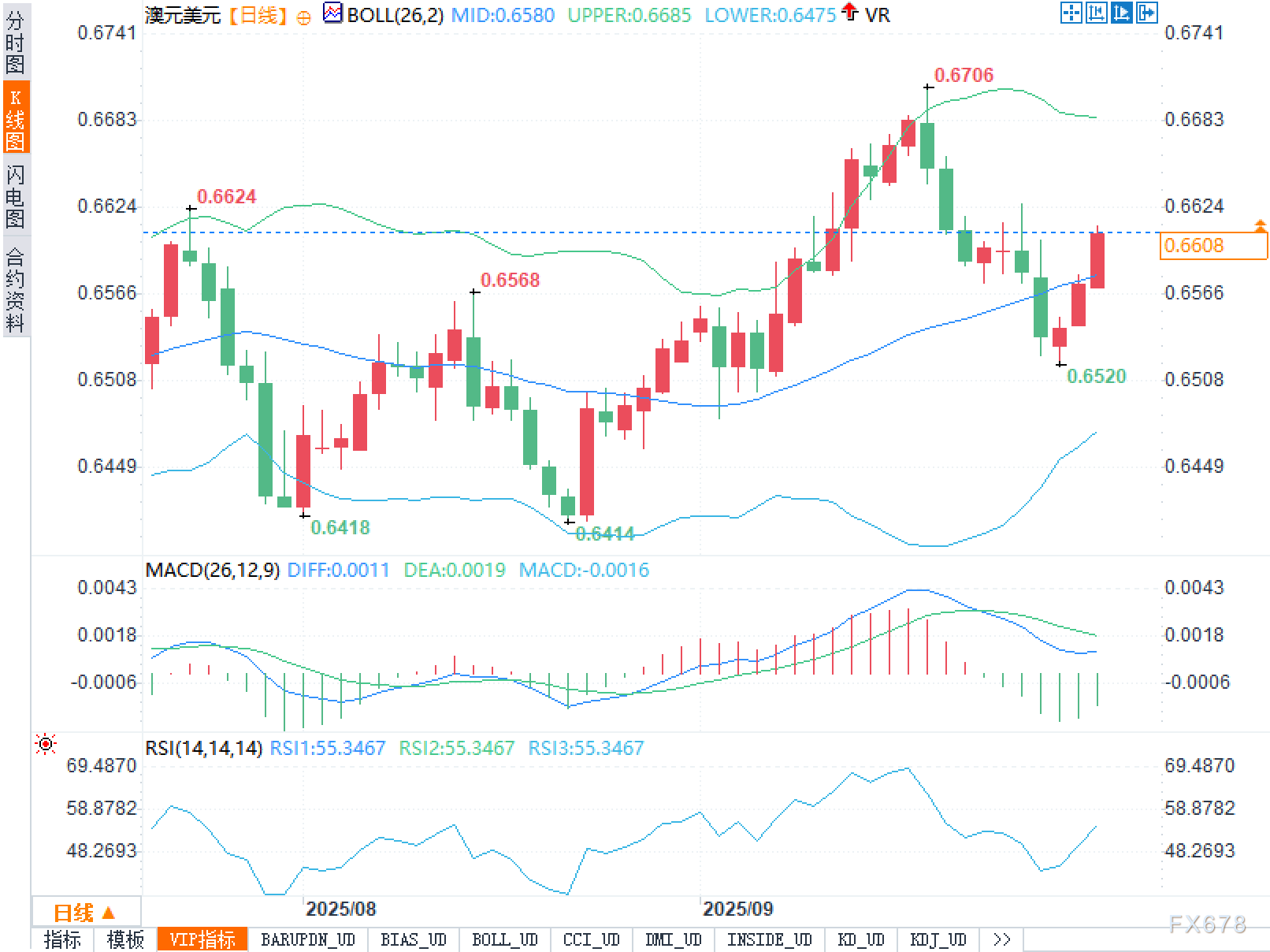 汇通财经APP讯——周二(9月30日),澳元兑美元(AUD/USD)欧洲时段交投于0.6600上方。基本面上,一边是澳洲联储(RBA)按兵不动但释放偏鹰信号,另一边是美元中期转弱的市场共识正在积累。两股力量叠加,使得澳元阶段性占优,技术面亦出现与之共振的迹象。
