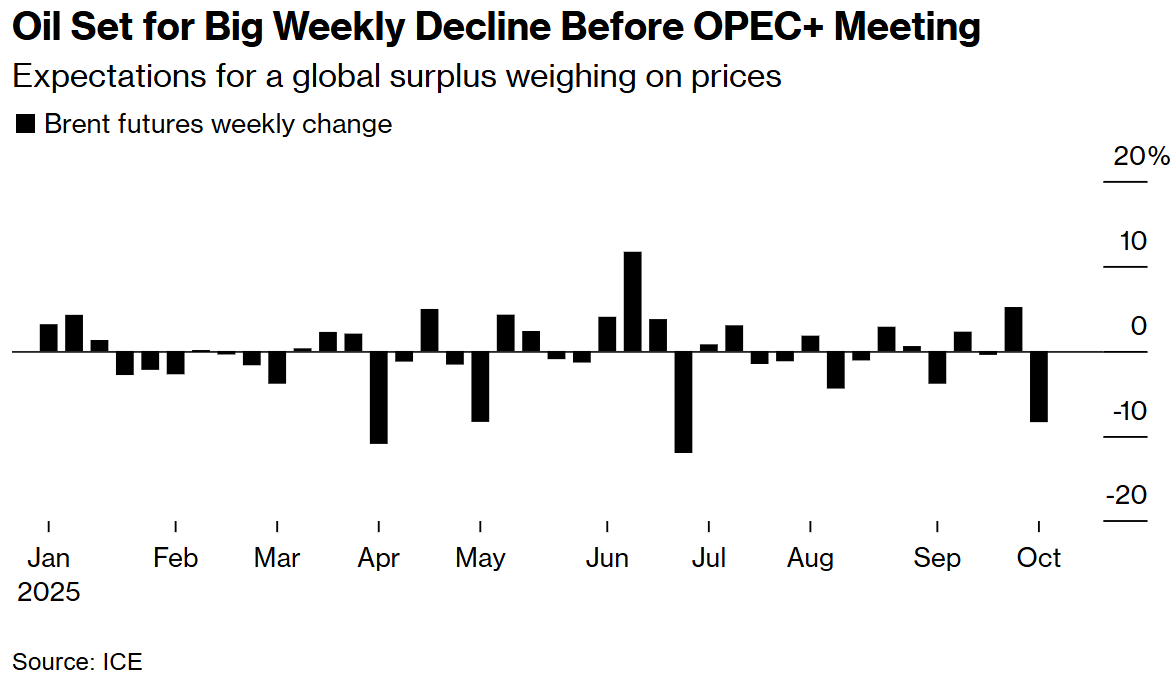 油价或将创6月底以来最大周跌幅!OPEC+会议前夕供应过剩担忧加剧