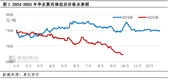 宏观预期面的变化对市场形成阶段性的扰动。7月1日召开的中央财经委员会第六次会议释放关键政策信号,明确提出关注并解决企业低价无序竞争问题,通过规范企业行为、推动产品质量升级、加快淘汰落后产能等举措引导行业健康发展。在此背景下,7月份反“内卷”的政策信号持续释放,市场对行业供给优化的预期升温,商品市场情绪得到显著提振,PP期货上涨,现货市场持货商挺价意愿同步增强。然而,8-9月份随着政策预期逐步降温,“反内卷”相关讨论热度回落,商品市场承压下行,PP市场亦重回基本面主导。特别是9月份旺季需求提升缓慢,叠加国庆节前持货商出于降库避险需求出货意愿较强,令PP价格下滑加快。